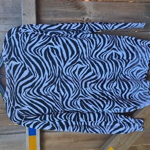 Chic sweater with bold black and white pattern. Ideal for stylish outings. pit to pit stretches to 25"