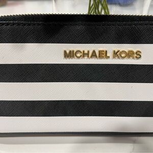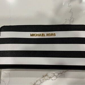 Michael Kors Black and White Striped Clutch Wallet (NEW)