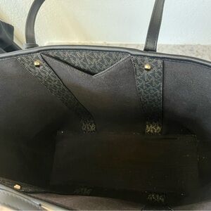 Stylish Michael Kors tote. Features black and yellow design. Iconic MK pattern. Perfect for everyday use.