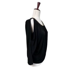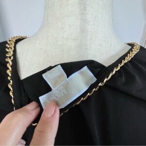 Michael Kors Black w/ Gold Chain 3/4 Sleeve Cold Shoulder Knit Top. Small