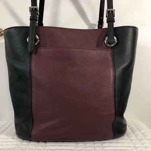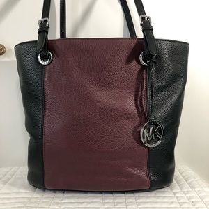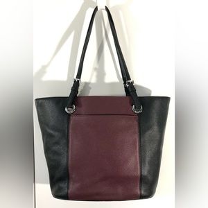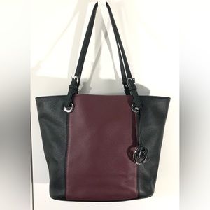 Michael Kors Large Jet Set Tote features a two-tone color combination in Black/Claret.
