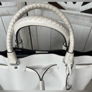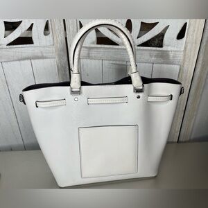 Michael Kors Blakely Medium Leather Bucket Bag Optic White & Silver Hardware