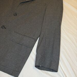 Two-button front, dual vents, four-button cuffs, fully lined interior, excellent condition, includes spare buttons.