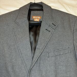 Michael Kors Blazer 38R Gray Houndstooth 100% Cotton Jacket Pink Modern Fit