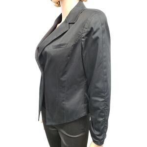Michael Kors Blazer Jacket Women 4 Angled Hem Ruched Sleeves Lined Black Cotton