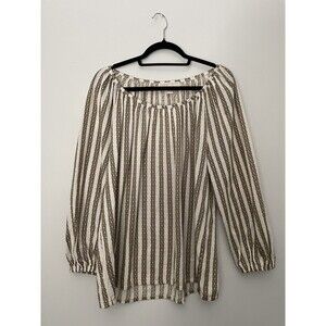 Michael Kors Blouse Career Woman Beige Gold 3/4 Sleeve Size L NWT Retail $64