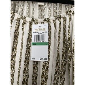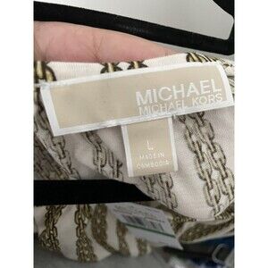 Michael Kors Womens Blouse Chain Link Bone Gold 3/4 Sleeve Stretch Size L NWT.