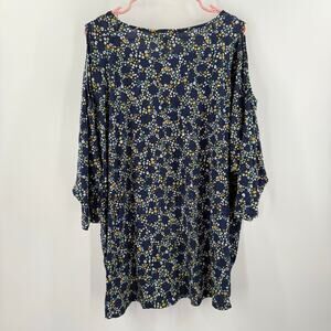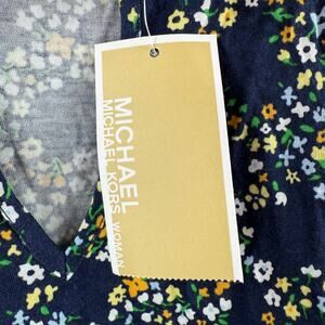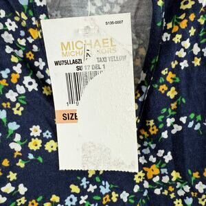 Michael Kors Blouse Cold Shoulder Size 2X NWT Navy Taxi Yellow Plus Curvy Top Ditsy Floral