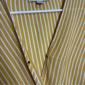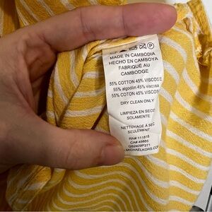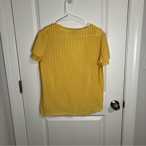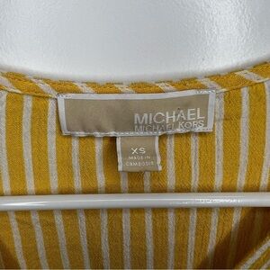 Michael Kors Blouse Faux Wrap Size XS Yellow White Stripe Short Sleeve Spring