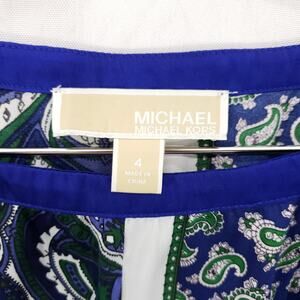 Michael Kors Blouse Womens 4 Blue Green Paisley Print Elastic Waist Pullover Top