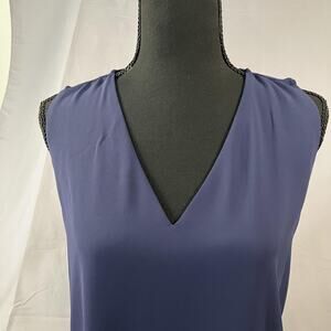 Michael Kors Blouse Womens Large Navy Blue Sleeveless Layered V Neck Top