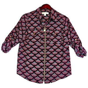 Michael Kors Blouse Womens Medium Black White Cold Shoulder Paisley Floral Print