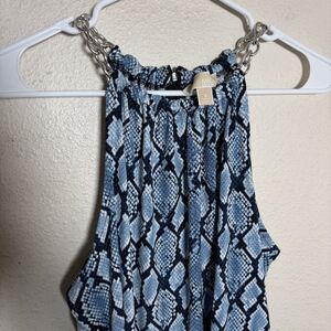 Michael Kors Blouse Women's Small Blue Snake Print Chain Tank Top Career