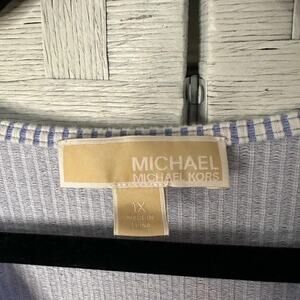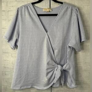 Michelles by Michael Kors top crisscross front with tie boxy in good condition one small hole in the back of the collar behind tag see pictures