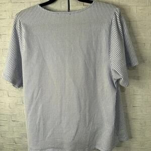 Michael Kors Blue And White Striped Cross-Front Top With Tie coastal grammar