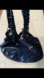 Large Gold Hardware. No stain, very clean. Braided straps are frying.