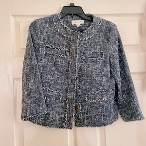 Elevate your wardrobe with this Michael Kors blue blazer, featuring a structured silhouette and a classic design. Crafted from high-quality materials, this blazer offers both style and comfort, making it a versatile addition to any outfit. Its timeless appeal ensures it remains a staple piece for various occasions. Smoke free environment