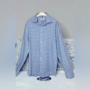 This Michael Kors shirt features a classic checkered pattern in navy blue, offering a relaxed fit perfect for casual outings. Made from lightweight cotton, it ensures comfort and style for any occasion.