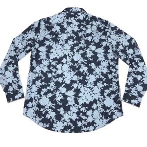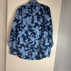 Michael Kors Blue Chambray Button Down Long Sleeve Spring Leaf Print Shirt NWT M
