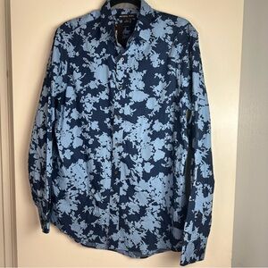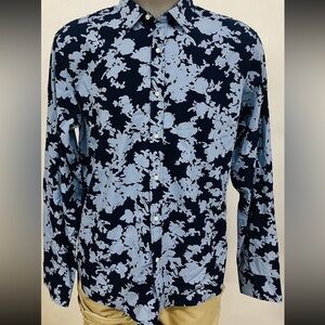 Michael Kors Blue Chambray, Men’s, Button Down, Long Sleeve, Spring Leaf Print shirt. NWT, Size M