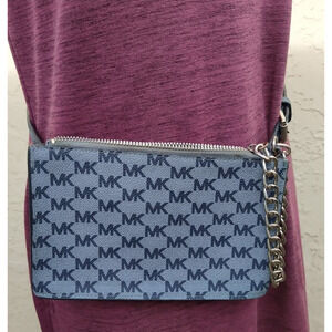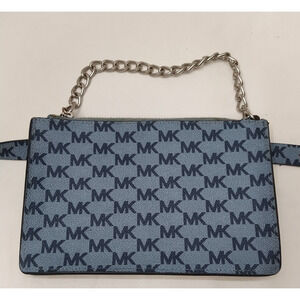 Michael Kors Blue Denim MK Logo Silver Chain Pull Women's Waist Pack Bell Bag