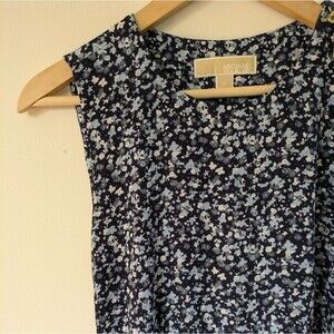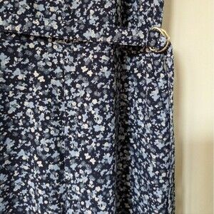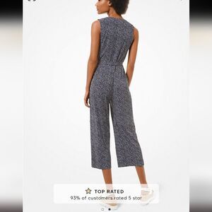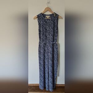 Michael Kors Blue Ditsy Floral Matte Jersey Belted Jumpsuit Size 10