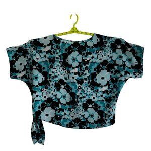 Michael Kors Blue Floral Print Dolman Sleeve Tie Waist Boxy Blouse 2X Lagenlook