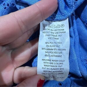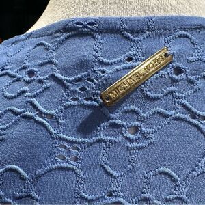 This Michael Kors Blue Floral Textured Flutter Sleeve Blouse Size Medium is in such good condition you may mistake it for brand new. The only flaw is the loose brand plate on the back neck area.