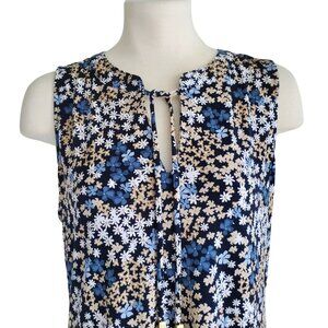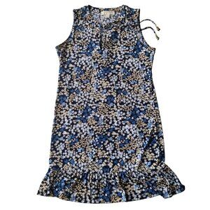 Michael Kors Blue Floral Tie-Neck Sleeveless Mini Dress Size M