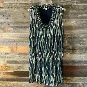 Michael Kors Blue Green Ikat Sleeveless Dress Women’s large Preowned in great condition A6
