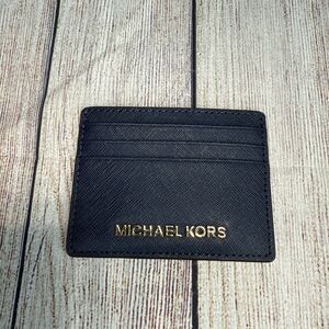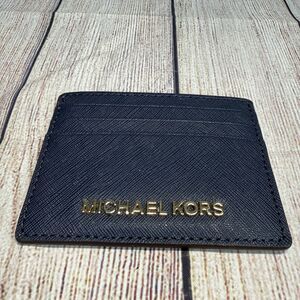 Michael Kors Blue Jet Set Card Case ID Holder Travel Leather Wallet Women’s