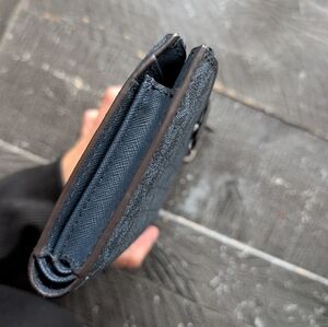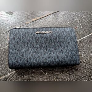 Michael Kors Blue Leather MK Printed Credit Card Wristlet Bifold Wallet