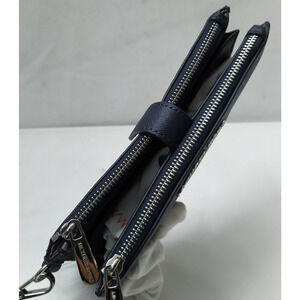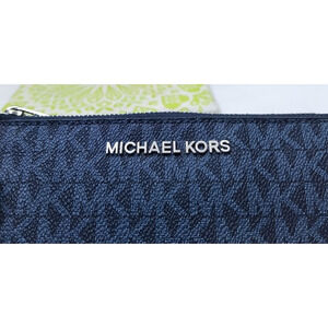 Michael Kors Blue Leather MK Printed Credit Card Wristlet Bifold Wallet