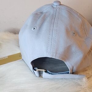 Brand new; never worn. It has a velcro, adjustable, strapback closure for a perfect fit. MK logo on the front. It is a powder blue color.