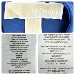 A timeless & elegant Michael Kors dress, featuring a flattering draped detail that cinches the waist for a feminine silhouette. Crafted from a comfortable stretch fabric, this long-sleeve dress transitions seamlessly from desk to dinner. The rich cobalt blue shade adds a striking, confident touch.