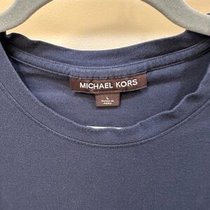 Experience the perfect blend of style and comfort with this Michael Kors long sleeve tee. Crafted in a rich blue hue, this shirt features a classic crew neck design and a smooth, lightweight fabric ideal for casual wear. Its minimalist appeal and standard fit make it a versatile addition to any wardrobe.