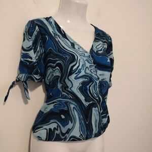 Michael Kors - Blue Oasis Short Sleeve V Neckline Blouse