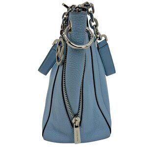 Michael Kors Blue Soft Pebbled Leather Shoulder Bag With Chain Straps & MK Logo Charm