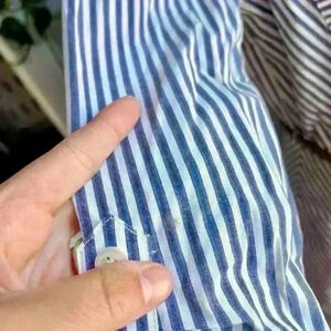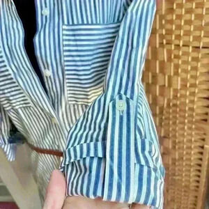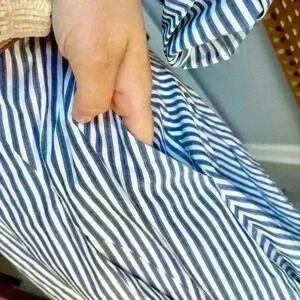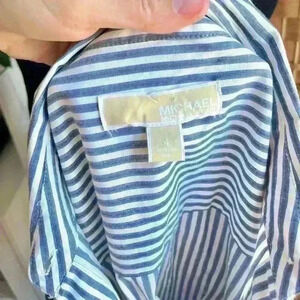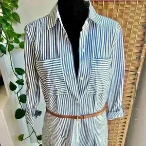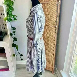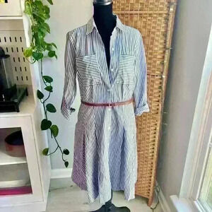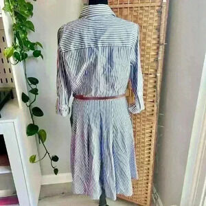 Michael Kors Blue Pin Stripe Belted Midi Button Down Dress