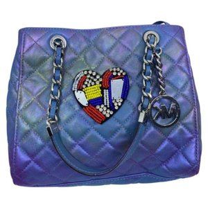 Michael Kors Blue Purple Customized W/ Graffiti & Embellishments Tote Bag