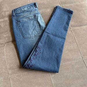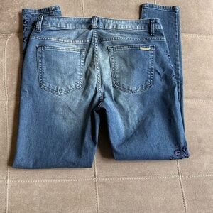 Michael Kors Blue Skinny Jeans with Floral Embroidery