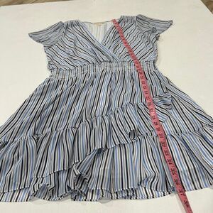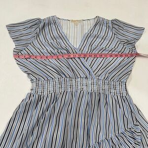 Michael Kors Blue Striped Wrap Dress XL Flutter Sleeve Ruffle Hem Summer Chic