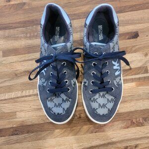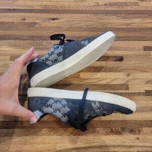 Michael Kors Blue Suede and Canvas Signature MK LOGO Lace Up Sneakers