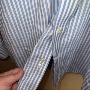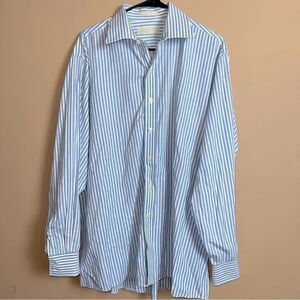 Michael Kors Blue & White Pinstripe Button Down Collared Dress Shirt Size 17