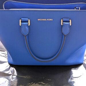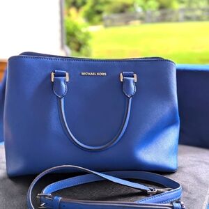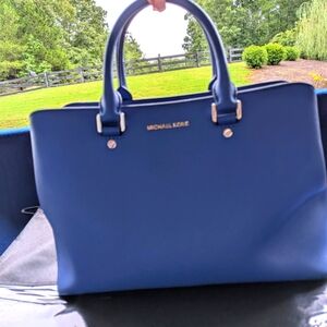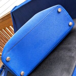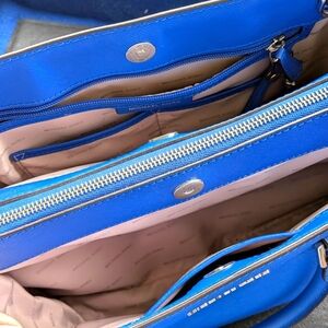 The bag has three large compartments with snap closure and a zipper in the middle. Dust bag included.