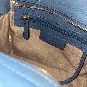 Michael Kors Blue and Gold Crossbody Bag with Studded Details, Saffiano Leather