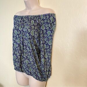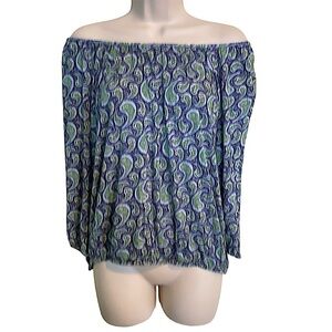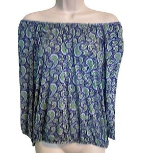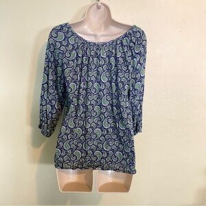 Michael Kors Blue and Green Paisley Print Scoop Neck Blouse Size Medium M