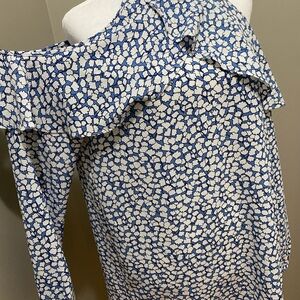 This elegant blouse from Michael Kors features a sophisticated blend of blue and white hues, perfect for adding a touch of class to any outfit. Crafted with attention to detail, it offers a comfortable fit and a timeless design that suits both casual and formal occasions.