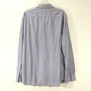 Men's dress shirt by Michael Kors. It is blue and white striped and buttons down the front. The size is XL and measures pit to pit 25 inches and length is 30.5 inches. Good used condition.