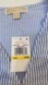 Chic blue and white striped blouse. Features a flattering V-neck. Ideal for casual or dressy occasions.
